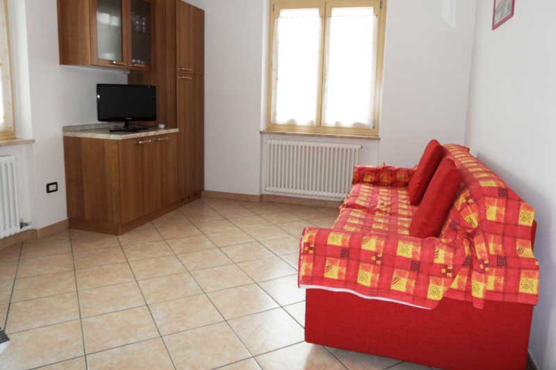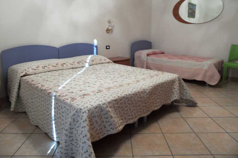 E’ dotato di tv colori, forno elettrico, piano cottura a gas, frigo con cella freezer, phon e lavatrice.